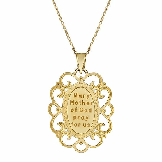 Featuring the Virgin Mary embellished with filigree and textured details, this lovely 10k gold pendant is perfect for everyday wear.