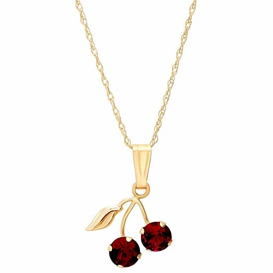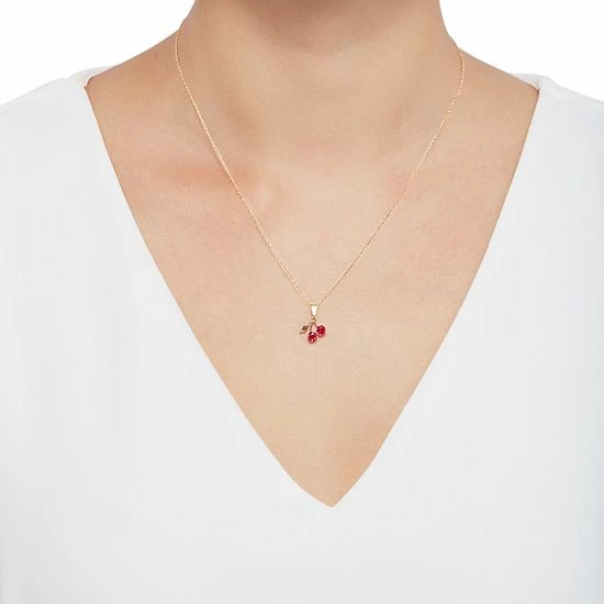 Add a fun touch to your wardrobe with this Everlasting Gold cherry pendant. Decorated with lab-created rubies, it completes your look in a unique way.