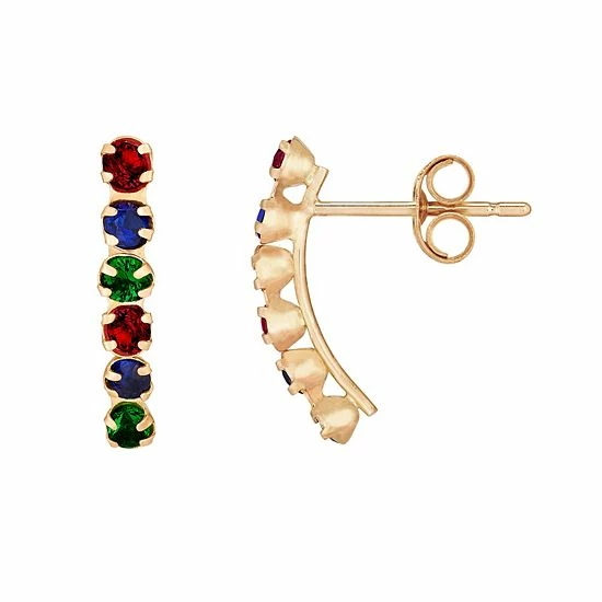 You’ll love the eye-catching style of these Everlasting Gold stud earrings. Decorated with lab-created rubies, emeralds and sapphires, they add a colorful touch to any look.