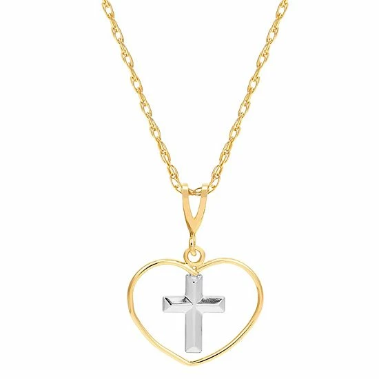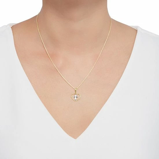 Enhance your wardrobe with the divine style of this Everlasting Gold heart cross pendant.