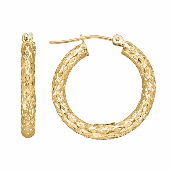 Open-worked hoops make these 10k gold earrings an attention-grabbing pair.