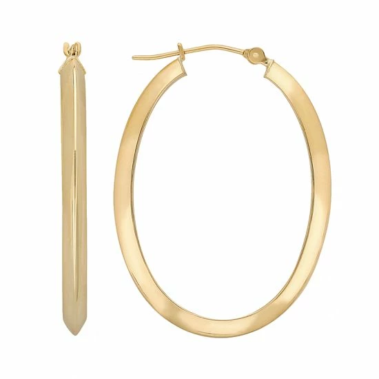 Oval hoops with pointed edges make these 10k gold earrings a sleek pair.