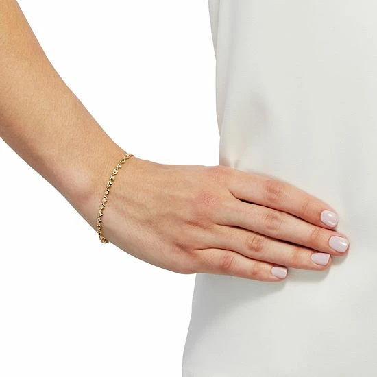 Achieve an eye-catching look with this fashionable Everlasting Gold stampato heart bracelet.