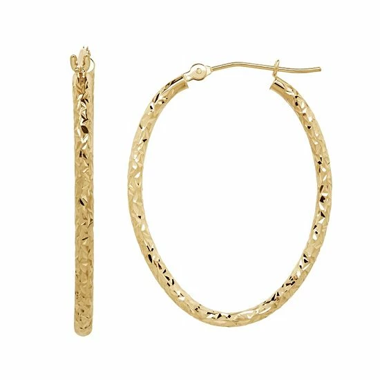 A diamond-cut texture gives these Everlasting Gold 10k gold oval hoop earrings striking beauty.