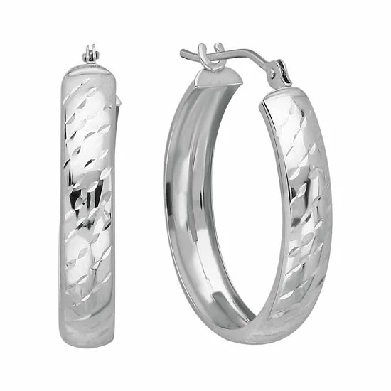 Diamond-cut stripes add a dazzling touch to these 10k white gold hoops.