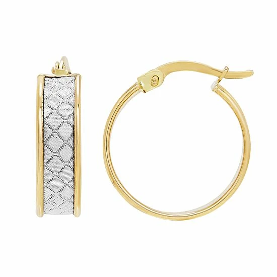 Featuring a textured geometric motif accentuated with glitter, these 14k gold hoop earrings provide eye-catching allure.