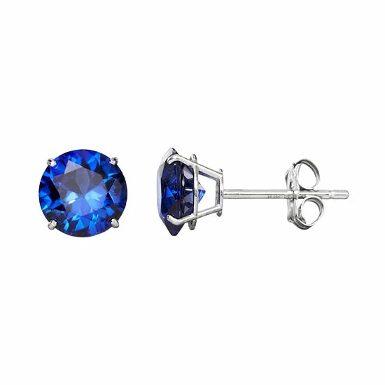 Round-cut lab-created sapphire gemstones give these 10k white gold stud earrings alluring appeal.
