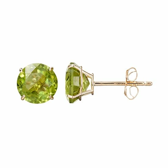 Round-cut peridot gemstones give these 10k gold stud earrings eye-catching style.