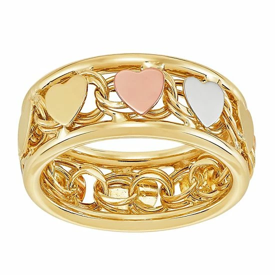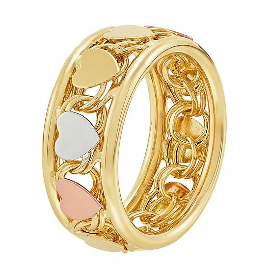 Polished heart accents give this tri-tone Everlasting Gold ring a charming look you’ll love.